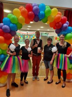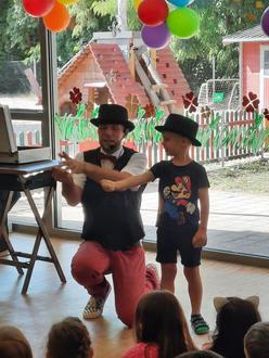 Nachdem ihn alle Kinder in ihren Gruppen kennenlernten, gab es für alle eine kleine Zaubershow. Und was wäre eine Zaubershow ohne Luftballons, Zuckerwatte und Popcorn.