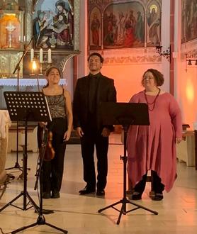 Jessica Quinten, Sopran faszinierte die Zuhörer mit „Meine Lippen, die küssen so heiß“ von F. Léhar. „Someone like you und Somewhere“ fanden einen begeisterten Zuspruch bei den Konzertbesuchern. Mari Alaff, die junge Violistin entzückte die Besucher mit Klängen von Mozart, Schubert und Rachmaninov. Gonzalo Paredes begleitete die Violistin und Sängerin mit Lebendigkeit und großem künsterlischen Können auf dem Klavier.