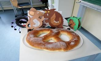 Endlich, nach knapp 2 Jahren Zwangspause durch die Corona-Pandemie war es wieder soweit: Im November 2021 durften wir wieder unser `Gesundes Frühstück` für alle Schüler/-innen anbieten. Selbst die damaligen strengen Hygienevorschriften konnten uns nicht davon abhalten. Gefeiert wurde der Wiedereinstieg, ganz nach dem traditionellen St. Martinsfest, mit einer riesigen Martinsbrezel, die natürlich auch wir, wie St. Martin unter allen Schüler/-innen teilten.