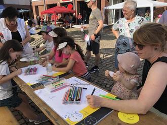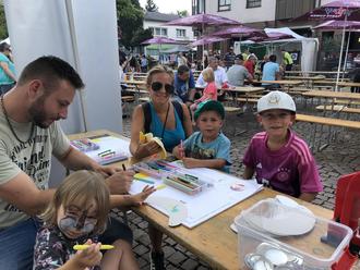 Mit großer Begeisterung malten die Kinder neben dem FairTrade Logo eine runde Papierscheibe und stanzten davon einen Button.