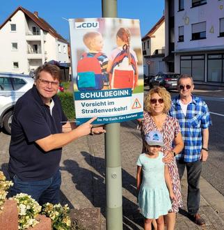 Diese Woche hat die Schule wieder begonnen. Um die Verkehrssicherheit auf dem Schulweg zu verbessern, haben Mitglieder des CDU Ortsverbandes Wiesbach Warntafeln aufgehängt, die die Autofahrer erinnern, dass die Schule wieder begonnen habe und man innerorts angemessen fahren solle. Kinder sind die schwächsten Verkehrsteilnehmer und bedürfen daher besonderer Rücksicht und Schutz. Er bittet daher alle Autofahrer um eine vorsichtige und rücksichtsvolle Fahrweise, erklärte Markus Schweitzer, Vorsitzender der CDU Wiesbach.