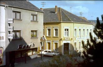 Das frühere Gasthaus Schorr, später Lebensmittelmarkt „Asko“, wurde 1989 abgetragen und an gleicher Stelle das sogenannte „Beroma-Haus“ mit Apotheke, Praxen und Büroräumen errichtet. Die Gemeinde hatte den Altbau gekauft, den Abriss veranlasst und das Baugrundstück an die Heusweiler Immobilienfirma Beroma unter der Auflage veräußert, entsprechend der städtebaulichen Situation ein Bauwerk zu errichten, das sich harmonisch in das Gesamtgefüge einbringt. Nach der Fertigstellung des Gebäudes hatte die Saarbrücker Kulturjournalistin und langjährige Vorsitzende des Werkbundes Saar, Marlen Dittmann, das Bauwerk in Augenschein genommen, die Überdimensionierung und „dekorierte Masse“ angeprangert und die fehlende Plastizität des Gebäudes bedauert. Zuletzt schrieb sie: „Schade, dass dieses städtebaulich wichtige Geschäftshaus kein Vorbild für weitere Neubauten im Ort abgeben kann.“Dieser Argumentation kann nur zugestimmt werden. Mit öffentlichen Mitteln ein denkmalwürdiges Objekt abzureisen und einen Neubau zu fördern, der das „Ensemble Kirchplatz“ beschädigt, bleibt unverständlich.