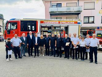 Im Rahmen des Jubiläums würdigten zahlreiche Ehrengäste, allen voran Bürgermeister und Chef der Wehr Dr. Andreas Feld die Leistungen und das Engagement der Kameradinnen und Kameraden. Der Dank galt allen Aktiven, der Alters- und Ehrenabteilung sowie den Familien, die hinter den Einsatzkräften stehen und so deren ehrenamtliche Arbeit ermöglichen. Daniela Feld überreichte als Kreisbeigeordnete ein Präsent zum Jubiläum an Löschbezirksführer Stephan Rein, die stellvertretende LAndesjugendleiterin Kerstin Schaak brachte ein Geschenk zum Jubiläum der Jugendfeuerwehr mit.