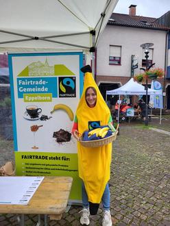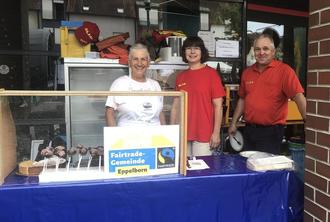Die Faire Trade Steuerungsgruppe der Gemeinde Eppelborn beteiligte sich mit einem Stand am Tag der Jugend. Wir boten sowohl faire Bananen als auch den leckeren fairen Kakao an. Dieses Angebot fand großen Anklang bei den Kindern und Jugendlichen und auch bei einigen Erwachsenen. Ebenso konnten die Kinder das Fair Trade Logo ausmalen und davon ein Button stanzen oder Schirmmützen kreativ gestalten. Das machte den Kindern großen Spaß.