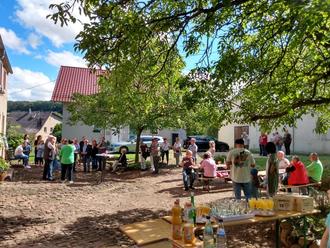Mit einem Glas Sekt und musikalischer Begleitung startete die Vernissage und mit Kaffee und Kuchen oder einem Glas Wein ließ es sich im Anschluss im Innenhof des Bauernhauses gut verweilen. Herzlichen Dank an dieser Stelle auch nochmal an alle Kuchenspender.