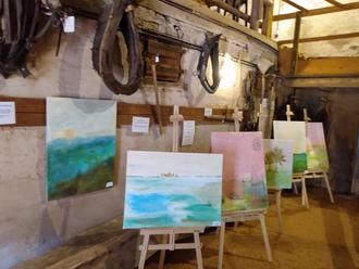 In der aktuellen Ausstellung zeigt Petra Scheid nicht nur ihre eigenen Werke zusammen mit den Acrylgemälden aus den Malkursen, die im Mai 2024 im Bauernhaus stattfanden. In vier Gruppen von Grundschulkindern bis zu Senioren haben deren Teilnehmer Freude an der Gestaltung und am kreativen Ausdruck bewiesen. Der besondere Reiz der aktuellen Ausstellung liegt darin, die unterschiedlichen Gemälde mit ähnlicher Thematik miteinander vergleichen zu können. Worin liegen die Unterschiede im Ausdruck zwischen den Generationen? Wie sehen Kinder die Welt und für welche Aspekte schärft das Alter den Blick?