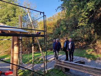 "Ein tolles Projekt!" Harald Schorr, Alwin Theobald, Markus Schweitzer und der CDU-Ortsvorsitzende Adrian Bost besichtigten vor Ort die neue Grillhütte, die von dem Wiesbacher Unternehmen Gabler hergestellt und aufgebaut wurde.
