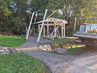 Im nächsten Schritt wurde nun in dieser Woche erfreulicherweise auch die neue Schutzhütte errichtet.