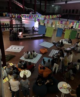 Auch in diesem Schuljahr fand die von der Klassenstufe 12 eigenständig geplante Veranstaltung statt, die den leisen Künsten eine Bühne bietet. Aufgrund der Witterung diesmal im Atrium der Schule anstatt auf der Wiese vor dem Neubau durchgeführt, schufen Picknickdecken, Sitzsäcke und gemütliche Beleuchtung eine Wohlfühlatmosphäre, die zum Verweilen einlud. Das abwechslungsreiche Bühnen-programm bot eine spannende Mischung aus Poesie und Musik, bei der sowohl aus den vergangenen Poetry Picknicks bekannte Akteure als auch Slam-Neulinge auf die Bühne traten. Neu war ebenfalls, dass die Technik-AG, allesamt Schüler*innen aus der Jahrgangsstufe 11, gemeinsam mit Herrn Spranger für den Aufbau und die Akustik sorgte.