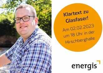 Nur noch bis Ende Februar können wir gemeinsam das Ausbauziel für Bubach-Calmesweiler erreichen. Sie sind noch unentschlossen? energis spricht Klartext zu Glasfaser: Patrick Annerfeld, Teamleiter des Außendienstes, und Jochen Strobel, Leiter Privat- und Gewerbekunden bei energis, stellen sich am 2.2.23 in der Hirschberghalle in Bubach-Calmesweiler Ihren Fragen. Lassen Sie uns bei Pizza und kühlen Getränken über alle offenen Punkte zum Thema Glasfaserausbau diskutieren. Ich freue mich auf Ihr Kommen!