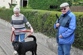Übergabe von Cayo durch „Frauchen“ Renate Six an Armin Six zum Spaziergang.