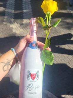 Fairer Sekt mit fairer Rose
