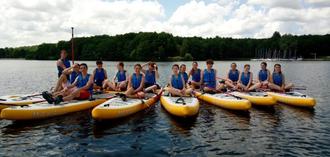 In einem vom Erlebnispädagogischen Zentrum angeleiteten Kurs lernten wir „Stand-Up-Paddling“ auf dem See zu fahren, unser Gleichgewicht zu trainieren und sogar das ein oder andere Kunststück auf einem „Floß“ (zusammengegurtete Boards) auszuprobieren. Für die meisten Teilnehmer wurde es auch ein nasses Erlebnis!