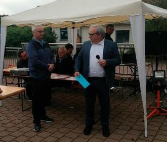 Schirmherr MdL Alwin Theobald hatte natürlich auch das obligatorische Kuvert dabei, um die Veranstaltung zu unterstützen.