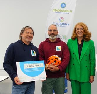 Die Gemeinschaftsschule Marpingen beteiligt sich bereits seit mehreren Jahren am Schul- und Stadtradeln. Jedes Jahr werden drei Wochen im Juni Rad-Kilometer gefahren, notiert und verglichen: Ob für den Schulweg, auf der Freizeittour, zum Einkaufen, für Termine beim Arzt oder die Fahrt zum Fitnessstudio: „Es geht häufig auch ohne motorisierten Untersatz“, fasst Thomas Alt, Organisator des Schulradelns an der Marpinger Schule, die Zielrichtung des Wettbewerbs kurz und knapp zusammen. In diesem Jahr waren er, seine Kollegen und v.a. die Schülerinnen und Schüler besonders erfolgreich: Sie wurden als fahrradaktivste saarl. Schule im Jahr 2024 Ende September im Umweltministerium ausgezeichnet – mit einer Urkunde und einem Scheck über 2000 Euro Preisgeld: Die 51 Marpinger Schulradlerinnen und –radler hatten im Juni 2024 so kräftig in die Pedale getreten, dass am Ende 260 km pro Wade, das machten 520 km pro Teilnehmer/in, zusammenkamen, was die Marpinger Gemeinschaftsschule unangefochten an die Spitze des Schulrankings in der Kategorie „Weiterführende Schule“ katapultierte. Thomas Alt und Markus Mörsdorf, beide Lehrer in Marpingen und engagierte Radfahrer, nahmen von Staatssekretär Sebastian Thul die Auszeichnung und von Umweltministerin Petra Berg die Glückwünsche entgegen, mit denen auch die Leistung der Schüler/innen geehrte wurde, die im Juni die Strecke vom Saarland zur Olympiastadt Paris aus eigener Muskelkraft bewältigt hatten. „Mit dem Fahrrad nach Paris“ hat eine ganze Menge an unserer Schule bewegt“, erklären beide unisono.