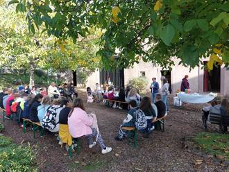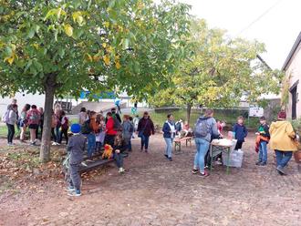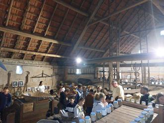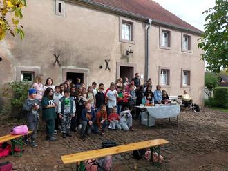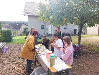 Am 13. Oktober machte die 5. Klasse der Gemeinschaftsschule Eppelborn einen Ausflug ins Bauernhaus Habach. Dort erkundeten sie den Alltag der Menschen in unserer Heimat vor über hundert Jahren und machten mit dem Museumsquiz eine spannende Rallye durch das ganze Bauernhaus. Interessant ist das Bauernhaus dabei nicht nur als historisches Museum, denn aktuell wird zudem die Kunstausstellung „The universe of circles“ von Keshyana Kopali gezeigt. Höhepunkt des Besuchs war ein Frühstück „wie früher“ mit Zuckerschmeere und frisch aufgebrühtem Tee mit Kräutern aus dem Garten. Den Schülerinnen und Schülern haben die Schmeere nach anfänglicher Skepsis bestens geschmeckt und so mancher ging mit der Einsicht nach Hause, dass ein Museumsbesuch in einem alten Bauernhaus alles andere als langweilig sein kann.
