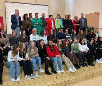 Nach einer Präsentation durch die Schülerinnen und Schüler beider Schulen folgte ein gemeinsamer Rundgang durch das Gebäude. Unsere Besucher bestaunten die Werke der Schülerinnen und Schüler, die in 15 großformatigen Bildern Themen der Nachhaltigkeit und der sozialen Gerechtigkeit über drei Stockwerke hinweg künstlerisch umgesetzt haben. Angeleitet wurden Sie dabei durch die Künstlerin Lioba Amann und die Schulentwicklungsbeauftragte des Landkreises Saarlouis, Frau Natalie Sadik.