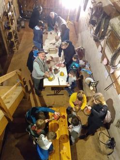 Am 19. und 20. Oktober wurde es besonders gruselig im Habacher Bauernhaus. An beiden Tagen kamen je ein Dutzend Kinder, um wie früher richtige „Rommelbòòze“ aus echten Futterrüben zu schnitzen. Diese wurden früher in fast jedem Ort als Viehfutter angebaut, sind heute aber nur noch bei wenigen Landwirten im Saarland zu bekommen. Für uns hatte Bauer Werner Schmitt aus Bardenbach extra große und schöne „Rommeln“ zur Seite gelegt. Das Jugendrotkreuz Habach verlegte am Freitag sogar seine Gruppenstunde ins Bauernhaus, um den Rommeln schöne und schaurige Gesichter zu verpassen. Nach vollendeter Arbeit wurden im Schein der Rommelbòòze Kaffee, Tee und Kuchen genossen. Anschließend wurde noch das Bauernhaus und die aktuelle Ausstellung „The universe of circles“ von Keshyana Kopali erkundet.