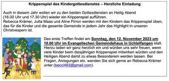Herzliche Einladung zu unseren Gottesdiensten in der Ev. Kirche Uchtelfangen