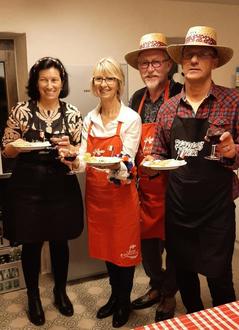 Es soll ein gemütlicher deutsch-französicher Abend werden. Sie werden von unseren Gästen aus Outreau und Mitgliedern des Partnerschaftsvereins bedient. Der Wirt bietet Käseteller zum Wein an