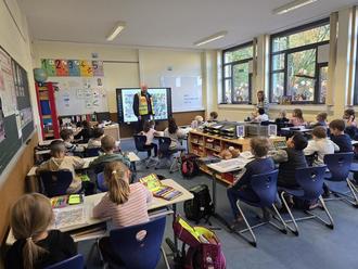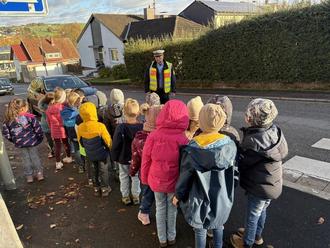 Am Dienstag, 28.10.2025 und am Donnerstag, 30.10.2025 besuchte unser Verkehrspolizist Herr Wagner die drei ersten Klassen, dienstags in Bubach und donnerstags in Eppelborn.