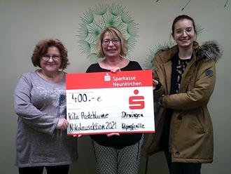 Die Kolpingfamilie Dirmingen richtet schon seit Jahren die Nikolausaktion für die Dirminger Kinder aus. Wer gerne Besuch vom Nikolaus am Nikolausabend bekommen möchte, kann sich an die Kolpingfamilie wenden. Dank vieler ehrenamtlicher Helfer ist dies möglich. Die besuchten Familien zeigen ihren Dank dafür oftmals durch eine Geldspende, die von der Kolpingfamilie weiter gegeben wird. So wurde auch das Geld der Nikolausaktion 2021 zu einem Teil an die Kindertagesstätte Pusteblume weitergegeben.