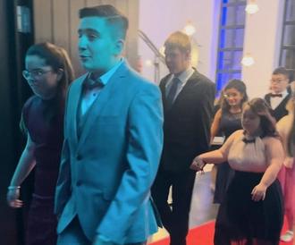 Seit Mai diesen Jahres hatten sie sich beim Tanzkurs in Marlenes Tanzwelt darauf vorbereitet. Am vergangenen Samstag konnten sie die Früchte ihrer Arbeit ernten. Zwölf Schülerinnen und Schüler der Rothenbergschule Dirmingen zeigten beim Ball ohne Grenzen in der Stadthalle Lebach ihr Können und feierten anschließend mit den anderen Teilnehmern sowie Familie, Freunden und Lehrern ein rauschendes Fest. Alle hatten sich „Ball gemäß“ herausgeputzt. Die 18jährige Emilie war zum Beispiel „extra beim Frisör gewesen“. In Ballkleid und mit neuer Handtasche fühlte sie sich sichtlich wohl. Am Arm ihres Klassenkameraden David zog sie in den Saal ein und zeigte gemeinsam mit allen anderen die gelernten Tänze Walzer, Rock´n Roll und Foxtrott. Dieses Repertoire hatte Marlene Borscheid in der Tanzwelt Lebach mit viel Einfühlungsvermögen mit den Jugendlichen erarbeitet. Dass der Ball ohne Grenzen für alle ein unvergessliches Erlebnis war, ist vor allem ihrem grenzenlosen Engagement zu verdanken – danke Marlene.