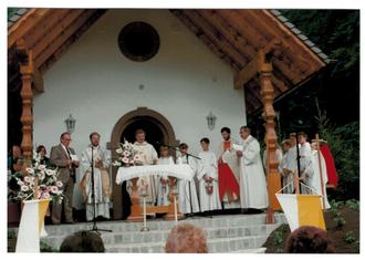 Ein Jahr später war eine weitere Stätte des Gebetes errichtet. Prof. Balthasar Fischer (1912–2001) aus Trier weihte am 03.10.1996 die von der Familie Brachmann erbaute „Christuskapelle“ auf dem Steinhügel in Eppelborn.