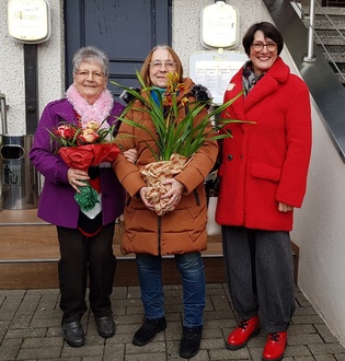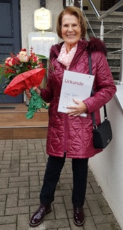Die Sopranistin und ehemals langjährige Laufkassiererin Frau Irmgard Scholtes wurde für 30 Jahre Gesang im ehemaligen Kirchenchor St. Laurentius und jetzigen Frauenchor mit einem schönen Blumenstrauß geehrt.