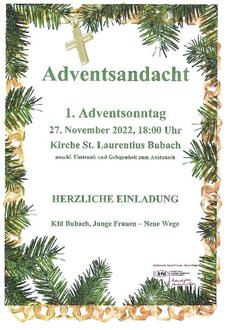 18:00 Uhr Adventsandacht der kfd-Gruppe “Junge Frauen - Neue Wege” in St. Laurentius Bubach
