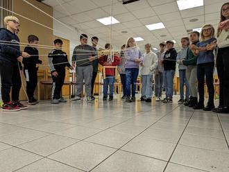 Nachdem die arbeitsreichen Tage vollendet waren, standen die Abende im Zeichen des gemütlichen Beisammenseins. So spielten die Klassen gemeinsam mit Klassenlehrer*innen und Co-Klassenlehrer*innen lustige Gesellschaftsspiele, traten in kleinen Gruppenherausforderungen gegeneinander an und versuchten das Rätsel des Geistes zu lösen.