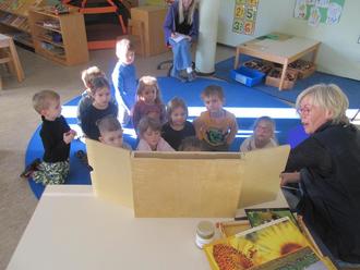 Frau Augustin stellte sich zunächst allen Kindern vor und die Kinder der Kita sagten Frau Augustin, ihren Namen, bevor sie ihre interessanten Materialien auspackte.
