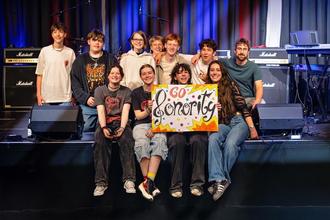 Beim Preisträgerkonzert des saarländischen Schülerband-Wettbewerbs ‚ROCK ON!!!‘, bei dem vier herausragende saarländische Schülerbands der Stummschen Reithalle in Neunkirchen auftraten, errang die Schulband „Sonority“ des JKG einen großen Erfolg Die zehnköpfige Gruppe unter der Leitung von Lukas Scherer und der technischen Unterstützung von Marco Zimmer und Sascha Brittner hatte sich zuvor mit einem Musikvideo beworben und konnte nun mit ihrer Musik und Ausstrahlung auf der Bühne das Publikum in der prall gefüllten Konzertlocation begeistern! Es wurde getanzt, gejubelt, geschrien, mitgesungen, applaudiert und einfach gefeiert! Mitgefiebert haben auch etwa 40 Schüler des JKG, die mit einem von der Landesakademie für musisch-kulturellen Bildung e. V. gesponserten Fanbus angereist waren. Sichtlich erfüllt und von dem Auftritt berauscht, hielten die jungen Musiker am Ende sogar den mit 300 € dotierten Sonderpreis für den besten selbstgeschriebenen Song in den Händen. Die Schulgemeinschaft des JKG gratuliert und freut sich bereits auf die folgenden Projekte unserer erfolgreichen Nachwuchstalente.