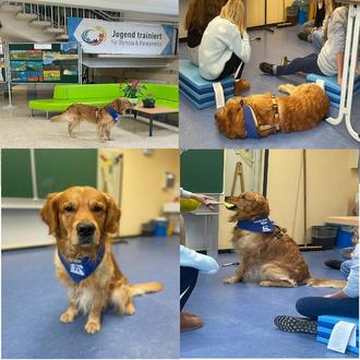 Unser Schulbegleithund Miko hat am vergangenen Freitag mit Bravour die alle 18 Monate fällige Rezertifizierung bestanden. Diese Überprüfung ist notwendig, um sicherzustellen, dass Miko weiterhin die hohen Anforderungen erfüllt, die an Schulbegleithunde gestellt werden. In der Schulhunde-AG konnte Miko erneut eindrucksvoll zeigen, wie sehr er seinen Einsatz in der Schule liebt und wie einfühlsam er mit den Schülerinnen und Schülern umgeht. Mit seiner offenen und geduldigen Art ist er ein wertvoller Bestandteil des Schullebens und sorgt für eine besondere Atmosphäre im Unterricht. Zweimal pro Woche unterstützt Miko sein Frauchen bei ihrer Arbeit an unserer Schule, indem er die Schüler nicht nur motiviert, sondern auch Trost und Nähe spendet. Als „Seelentröster“ ist er für viele Kinder eine wichtige emotionale Stütze, vor allem in herausfordernden Situationen. Besonders beeindruckend ist seine Fähigkeit zur Lautstärkerückmeldung: Wenn es im Klassenraum zu laut wird, signalisiert Miko dies auf seine ruhige und freundliche Art – eine wertvolle Unterstützung für die Lehrkräfte. Darüber hinaus trägt Miko mit seiner fröhlichen und lebendigen Art dazu bei, dass der Unterricht für alle Beteiligten mehr Spaß macht. Er zaubert den Schülerinnen und Schülern ein Lächeln ins Gesicht und sorgt dafür, dass das Lernen mit Freude verbunden ist. Die erfolgreiche Rezertifizierung bestätigt, dass Miko weiterhin bestens für seine Aufgabe geeignet ist und ein unverzichtbarer Teil unserer Schulgemeinschaft bleibt. Wir sind stolz auf ihn und freuen uns auf viele weitere gemeinsame Einsätze!
