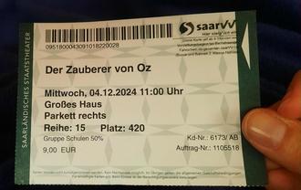 Für die restlichen Klassen ging es zum "Zauberer von Oz" ins Staatstheater Saarbrücken. Gebannt schaute und hörte man der spannenden Geschichte gespickt mit tollen Musicaleinlagen zu. Ein wunderbarer Tag für Groß und Klein!