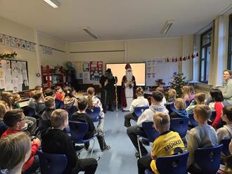Der Nikolaus besuchte am vergangenen Freitag mit tatkräftiger Unterstützung von Knecht Ruprecht und einer Delegation vom Förderverein die Kinder der Grundschule Eppelborn. Jede Klasse an beiden Standort wurde einzeln besucht. Organisiert wurde die gelungene Überraschung vom Förderverein der Grundschule Eppelborn. Der Nikolaus brachte für jedes Kind und jede Lehrkraft einen Weckmann vorbei. Wir danken dem Förderverein der Grundschule, der die Kosten übernahm und den Nikolaus mit seinem großen Helferteam organisierte. Ihr habt den Kindern einen besonderen Morgen und ein tolles Erlebnis bereitet.