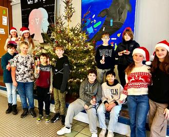 Organisiert wurde die Aktion von der Projektgruppe Casa do Zezinho der Klasse 7a unter der Leitung von Vera Hahnen und Martina Pape, Lehrerinnen an der Gemeinschaftsschule. Ausgeliefert wurden über 200 Fair Trade Nikoläuse. Den Erfolg der Aktion feierte man anschließend unter dem großen Schulweihnachtsbaum, den die SchülerInnen des Talentfaches der Stufe 9 mit ihrem Fachlehrer Thomas Alt eigenhändig gefällt und geschmückt hatten. Mit der Nikolausaktion aus Fair Trade Schokolade ist die Marpinger Schule Teil des weltweiten Projekts der Fair-Tradeschools und unterstreicht damit als anerkannte Schule der Nachhaltigkeit ihre Bemühungen, einen Beitrag für eine gerechtere Welt zu leisten.