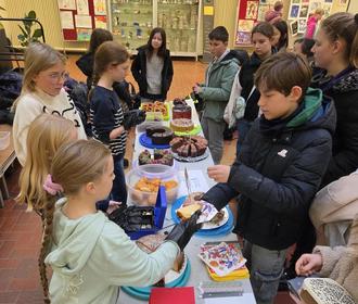 Deshalb wurden die Klasse und die AG aktiv: Fleißig wurden Kuchen, Brezeln und Berliner gebacken, und in der AG Schlüsselanhänger geknüpft. Schon konnte die Verkaufsaktion starten.
