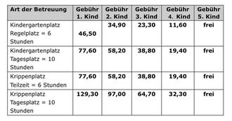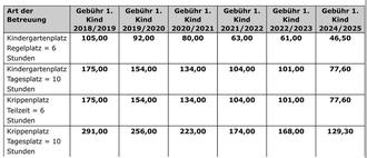 Übersicht über die schrittweise Senkung der Kita-Gebühren seit 2018/2019