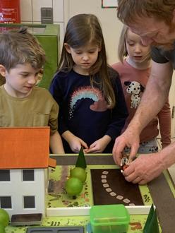 Herr Geisen hatte dazu eigens hierfür entwickelte, kindgerechte Modelle, zum Anfassen und Begreifen mitgebracht, wie das „BioMaZ“, ein Biomasse Zentrum im Kleinformat, und „Von wegen fauler Gurke – aus Biogut wird Energie“, um den Kindern den Biogut Kreislauf zu verdeutlichen. Dabei erfuhren die Kinder, warum Biogut nicht in den Restabfall gehört und wie aus diesem Wertstoff Energie und Kompost für das zu Hause entsteht. Der Biogut-Kreislauf wurde den Kindern spielerisch veranschaulicht und begeisterte die Mädchen und Jungen sowie die Pädagog*Innen gleichermaßen.