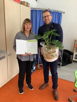 Im Rahmen einer Feierstunde gratulierten neben Bürgermeister Wenzel auch die Kolleginnen und Kollegen der Kinderkrippe Sonnenschein und der anderen Einrichtungen der Gemeinde sowie Vertreter des Personalrates. Neben den Glückwünschen wurde der Jubilarin besonders für ihr Fachwissen, ihr Engagement sowie ihre Zuverlässigkeit und Hilfsbereitschaft gedankt.