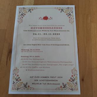 Wir laden Euch recht herzlich zu unserem Novemberzauber vom Schützenverein Wilhelm Tell Wehrshausen ein.