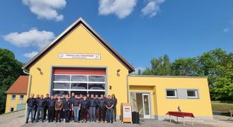 Er benannte die Hürden, die überwunden werden mussten, bis wir mit Hilfe der Dorferneuerung und der Stadt Bad Langensalza die Möglichkeit bekamen, unseren Wunsch nach einem funktionsgerechten Feuerwehrgebäude umzusetzen. Altwehrführer Dornheim zitierte sogar Leo Tolstoi, dass Ausdauer und Entschlossenheit zwei Eigenschaften sind, die bei jedem Unternehmen den Erfolg sichern.