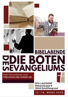| 20:00 Uhr | Bibelabend „Der Apostel Paulus“ - Die Notwendigkeit der Verkündigung |