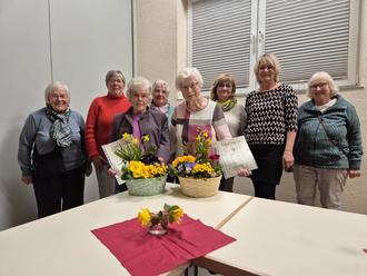 Der Vorstand bedankte sich für die langjährige Vereinstreue mit einem Blumenpräsent und wünscht den Geehrten alles Gute für die Zukunft. v.l.n.r.: Dagmar Herrmann, Angela Kiebach, Anita Münster (für 70 Jahre), Kattusch Weichl, Toni Veit (für 70 Jahre), Carmen Belli, Ina Bautz und Ragnhild Moheit-Wulfekamp. Es fehlt die zu Ehrende Jutta Beckert (für 60 Jahre)
