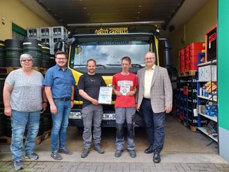 Der Delli Castelli Getränkevertrieb ist seit 45 Jahren im Schöffengrunder Ortsteil ansässig. „Ein wichtiger Baustein in der Arbeitswelt ist die Chancengleichheit, unabhängig von individuellen Merkmalen. Delli Castelli zeigt mit seinem Engagement, wie das gut gelingen kann“, sagte Michael Peller, Bürgermeister von Schöffengrund. Er lobte zudem den wertschätzenden, familiären Umgang der Inhaber mit den Mitarbeitenden, aber auch das freundliche, dem Kunden zugewandte Wesen von Matthias Schwarz. Der Bürgermeister begleitete die Jury beim Besuch des Betriebes, um die Auszeichnung zu übergeben.