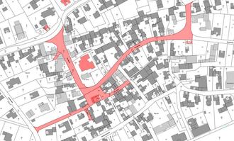 Die in der Gemeinde Schöffengrund, Ortsteil Laufdorf liegende Straße Am Markt - Flurstücke 13/73/4, 13/74/0, 14/100/0 und anteilig 12/119/1, 13/75/0 und 14/101/0 auf dem obigen Plan markiert - wird durch Beschluss der Gemeindevertretung vom 29.10.2020 nach § 4 des Hessischen Straßengesetzes (HStrG) als Gemeindestraße dem öffentlichen Verkehr gewidmet.