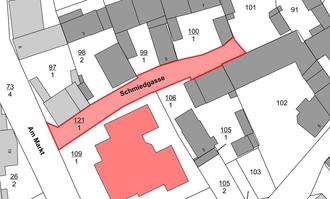Die in der Gemeinde Schöffengrund, Ortsteil Laufdorf liegende Straße Schmiedgasse - Flurstück 12/121/1 auf dem obigen Plan markiert - wird durch Beschluss der Gemeindevertretung vom 29.10.2020 nach § 4 des Hessischen Straßengesetzes (HStrG) als Gemeindestraße dem öffentlichen Verkehr gewidmet.