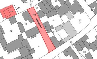 Die in der Gemeinde Schöffengrund, Ortsteil Laufdorf liegende Straße Untergasse - Flurstück 14/102/0 auf dem obigen Plan markiert - wird durch Beschluss der Gemeindevertretung vom 29.10.2020 nach § 4 des Hessischen Straßengesetzes (HStrG) als Gemeindestraße dem öffentlichen Verkehr gewidmet.