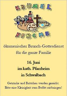 | 10.30 Uhr | ökumenische Krümelkirche in Schwalbach, kath. Kirche |